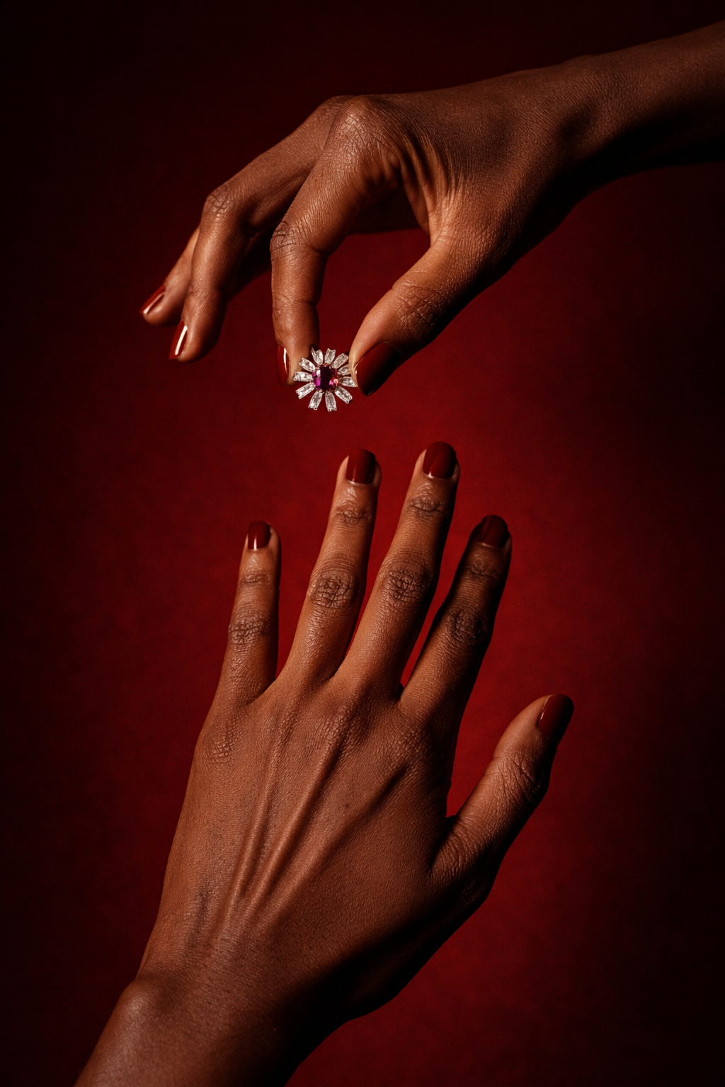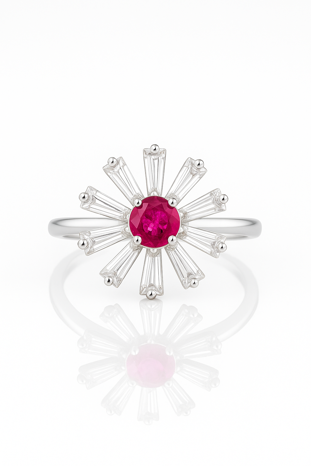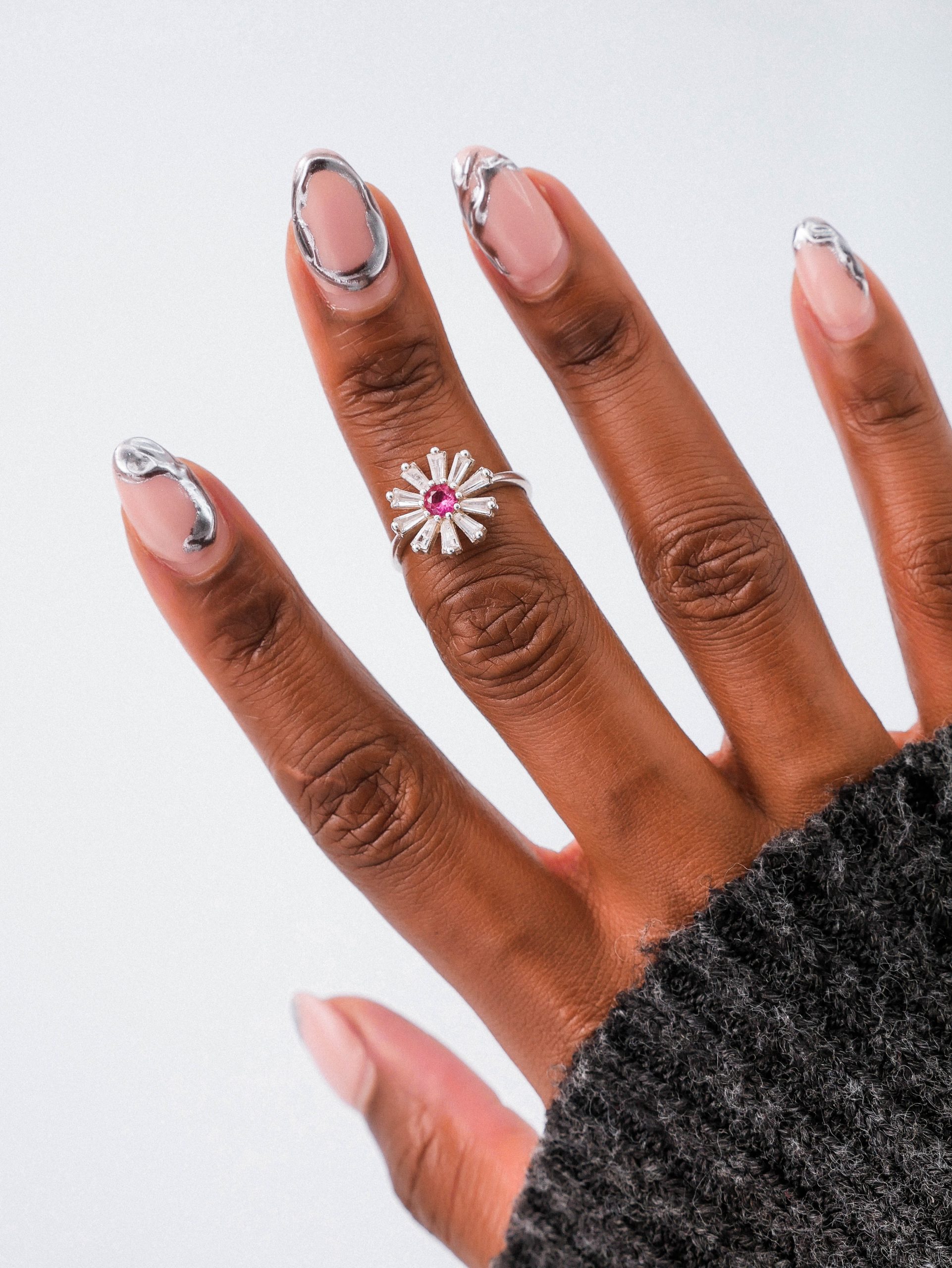 Handmade in Nairobi, The Bloom Ring is crafted in sterling silver with a vivid pink cubic zirconia center, encircled by petal-like baguette stones that radiate with floral energy. It’s a flower forged in metal — blooming fiercely, beautifully, and without apology.